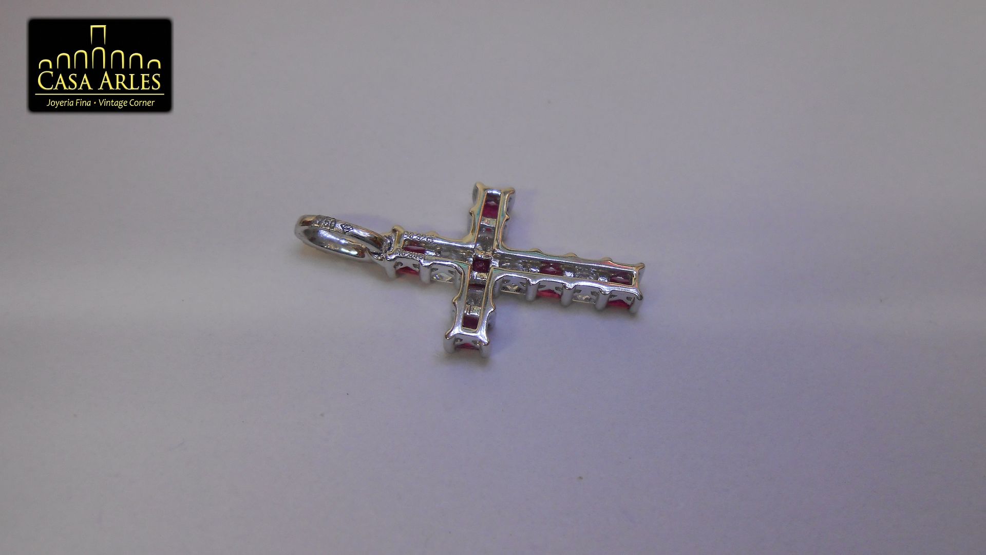 DIJE CRUZ EN ORO BLANCO 18K CON 0.32ct DE BRILLANTES Y RUBI 0.39ct