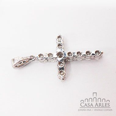 Dije de oro blanco de cruz e incrustaciones